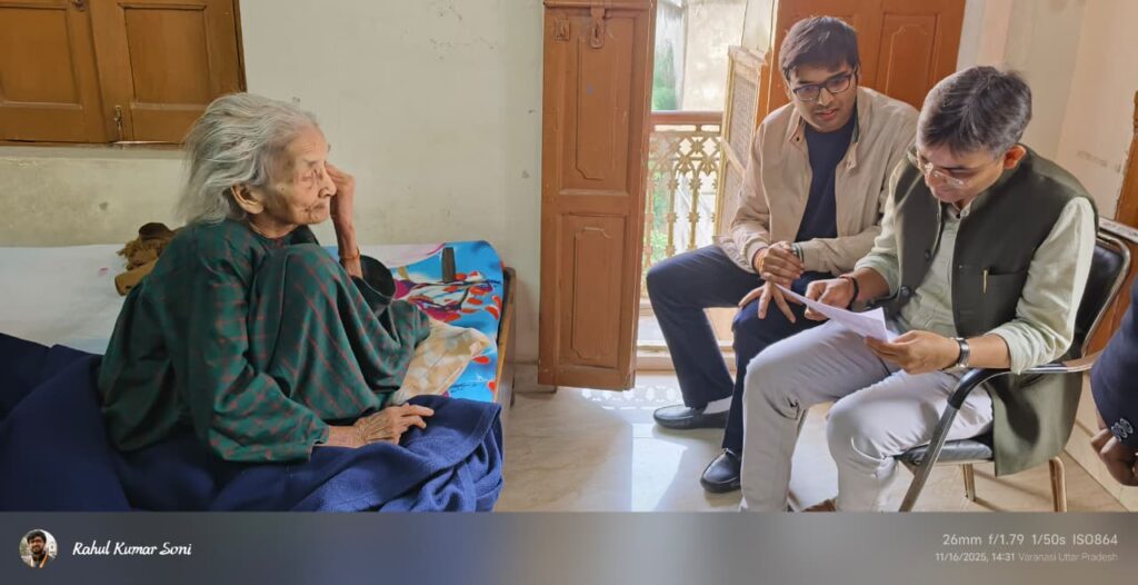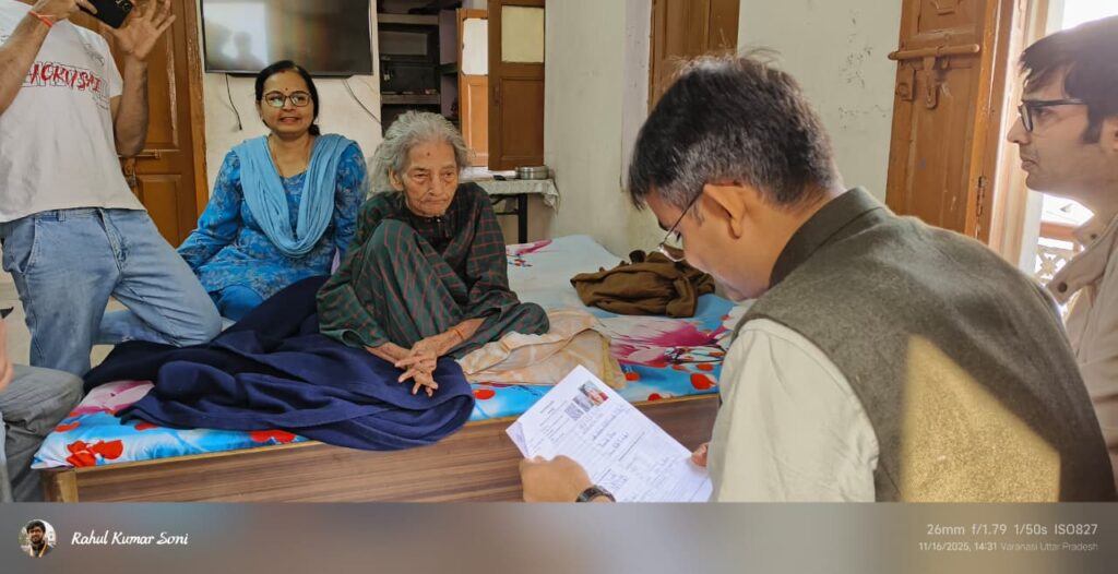 Voter Revision Drive Varanasi : वाराणसी के डीएम सत्येंद्र कुमार ने विशेष मतदाता पुनरीक्षण अभियान के तहत पद्मश्री डॉ. राजेश्वर आचार्य और 103 वर्षीय मतदाता राधिका त्रिपाठी से मुलाकात की। डीएम ने दोनों को पुनरीक्षण प्रक्रिया के बारे में विस्तार से जानकारी दी और उन्हें नामांकन/भोक्ता पर्चे (एन्यूमरेशन फॉर्म) भी सौंपे।