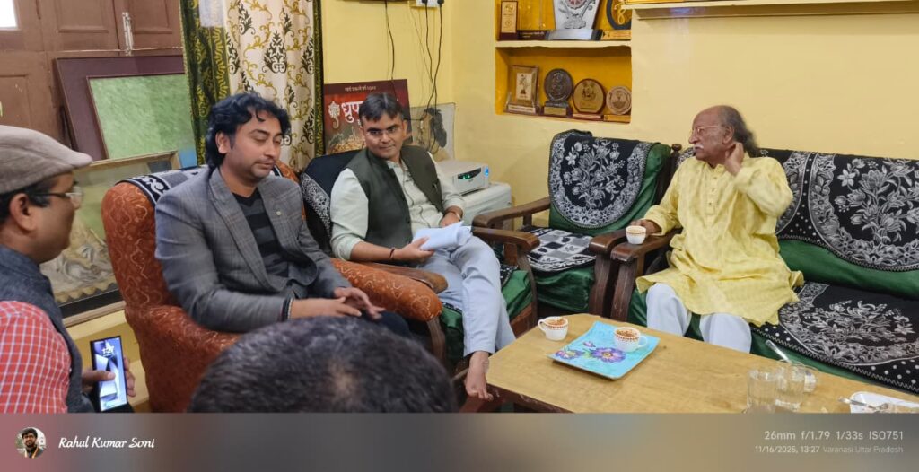 जिलाधिकारी सबसे पहले भदैनी स्थित आवास पर पहुंचे, जहाँ उन्होंने पद्मश्री सम्मानित हिंदुस्तानी शास्त्रीय गायक डॉ. राजेश्वर आचार्य से भेंट की।
