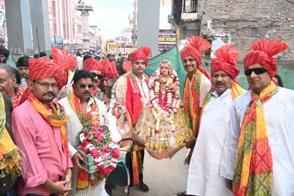शोभायात्रा में एक रथ पर विघ्नहर्ता भगवान गणेश की प्रतिमा स्थापित थी, जबकि दूसरे रथ पर मां गणगौर की भव्य प्रतिमा विराजमान थी। श्रद्धालुओं के बीच प्रसाद वितरण किया गया और जगह-जगह पुष्पवर्षा से स्वागत किया गया।