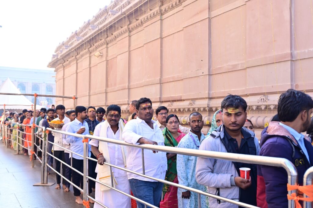 सुबह 2:15 बजे मंगला आरती के बाद मंदिर के कपाट खोले गए। बाबा विश्वनाथ का विशेष श्रृंगार दूल्हे के रूप में किया गया। उन्हें मोरपंख और रुद्राक्ष की मालाओं से सजाया गया। प्रशासन की ओर से श्रद्धालुओं पर पुष्प वर्षा कर स्वागत किया गया। दर्शन के लिए भक्तों को मात्र 2 सेकेंड का समय मिल रहा है, लेकिन बेहतर प्रबंधन के चलते 25 मिनट में श्रद्धालु गर्भगृह तक पहुंच जा रहे हैं।