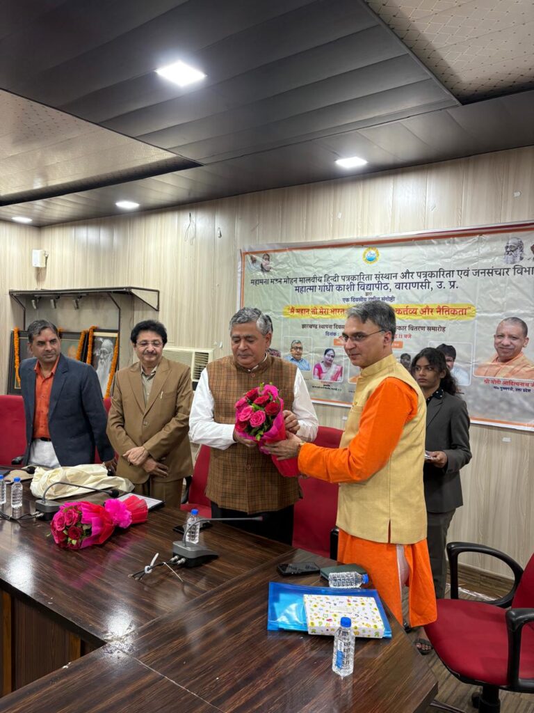 Civic Duty and Ethics : Mahatma Gandhi Kashi Vidyapith, Varanasi में आयोजित राष्ट्रीय संगोष्ठी में वरिष्ठ पत्रकार सुधीर शांतिलाल रावल और कुलपति प्रो. आनन्द कुमार त्यागी ने नागरिक कर्तव्य, नैतिकता और राष्ट्र प्रथम की भावना पर महत्वपूर्ण विचार रखे। समारोह में झारखण्ड स्थापना दिवस पर प्रतियोगिता विजेताओं को सम्मानित किया गया।