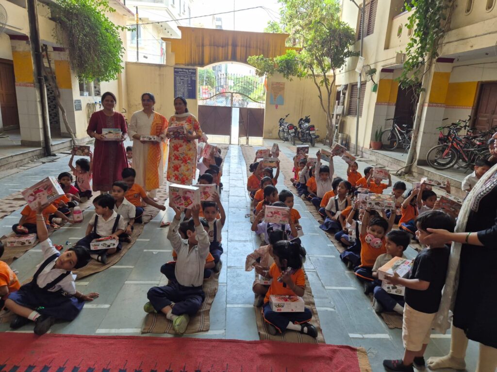 Rotary Club Varanasi North Service Program : वाराणसी के सरस्वती शिशु मंदिर, सिद्धगिरीबाग में रोटरी क्लब ऑफ वाराणसी नार्थ द्वारा सेवा कार्यक्रम आयोजित कर बच्चों को टिफिन, टॉफी और केक वितरित किए गए। कार्यक्रम में वाटर कूलर लगाने की घोषणा भी की गई।