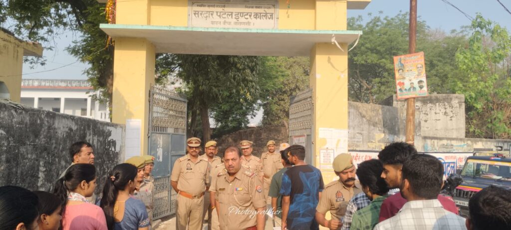 UP SI Exam 2026 : वाराणसी में UP पुलिस SI भर्ती परीक्षा 2026 के दौरान लमही स्थित सरदार पटेल इंटर कॉलेज में पुलिस की कड़ी सुरक्षा व्यवस्था की गई है। 46 केंद्रों पर 77 हजार से अधिक अभ्यर्थी परीक्षा दे रहे हैं, नकल रोकने के लिए सघन चेकिंग और पुलिस गश्त बढ़ाई गई है।